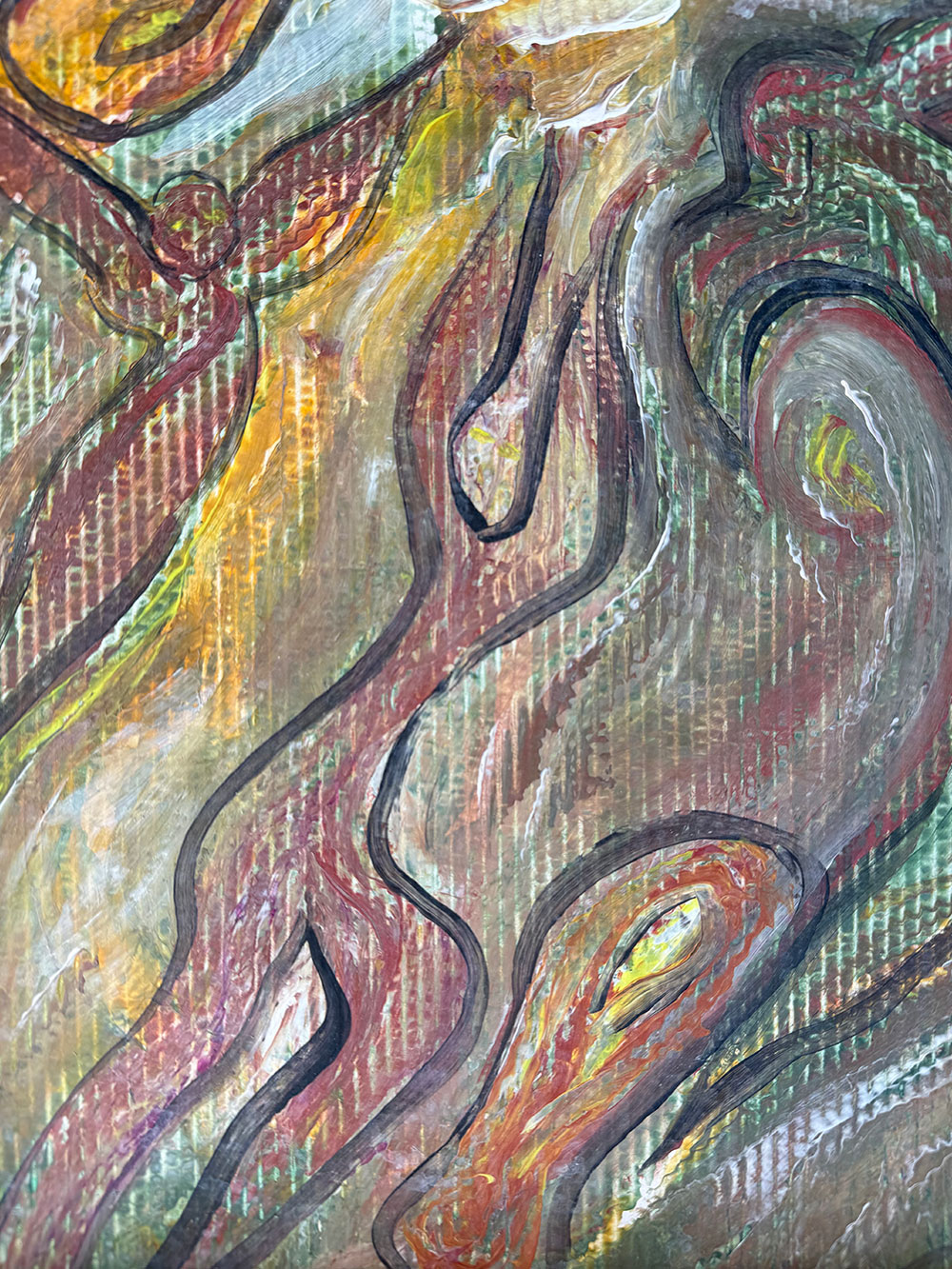 La peinture est plus expansive, l’imagination plus débridée; elle projette un élan intérieur qui donne une vision, transcription du réel ou de l’imaginaire;